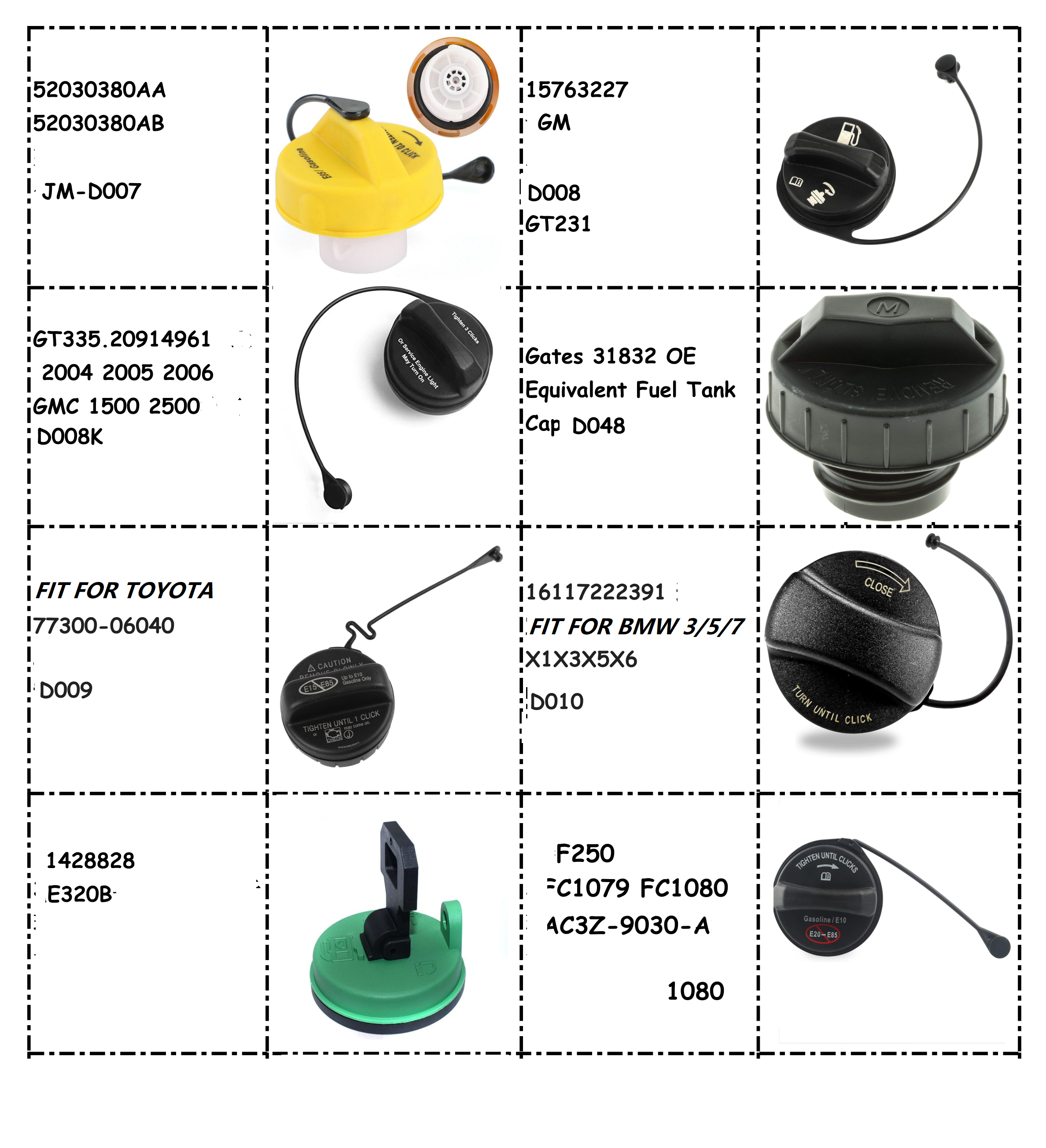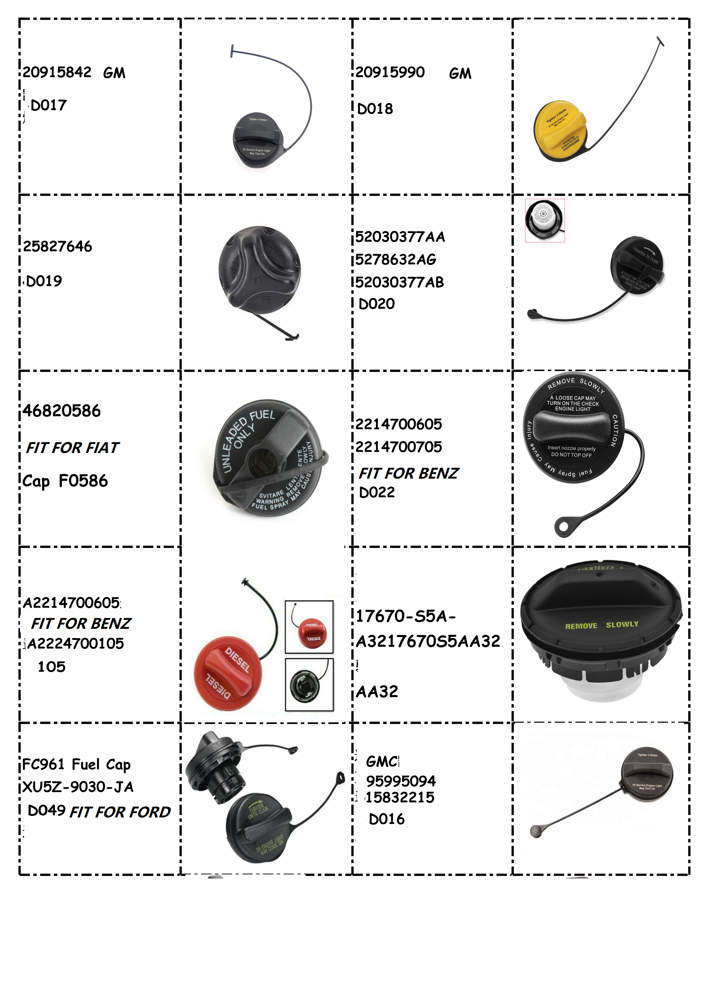 Gates engineers our OE quality fuel caps with durable construction to resist leaks, cracks, and contamination to your fuel system. Fix your fuel cap to the tank with our tamper-proof locking caps, or find a fuel cap solution for your passenger car, truck, or bus ventilation system with our vented, non-vented, and vented anti-surge fuel cap selections. In our efforts to help reduce pollution, we offer a special ecological cap that is designed to prevent harmful fuel gases from evaporating, and keeps fuel inside the vehicle tank, even in the case of an accident.  if you need more caps list , send email to us : sales@erwautoparts.com