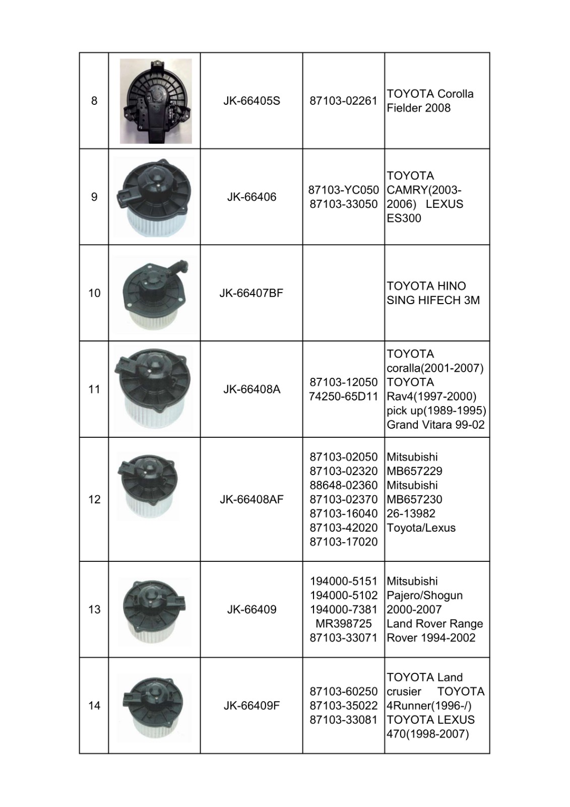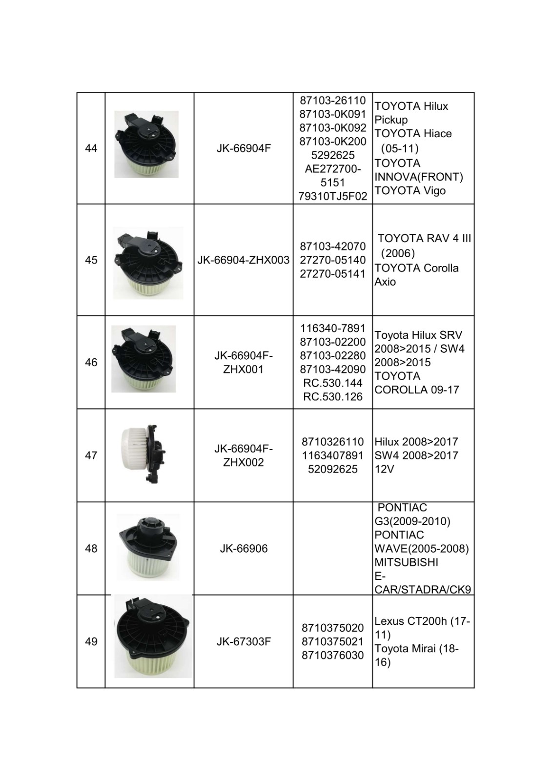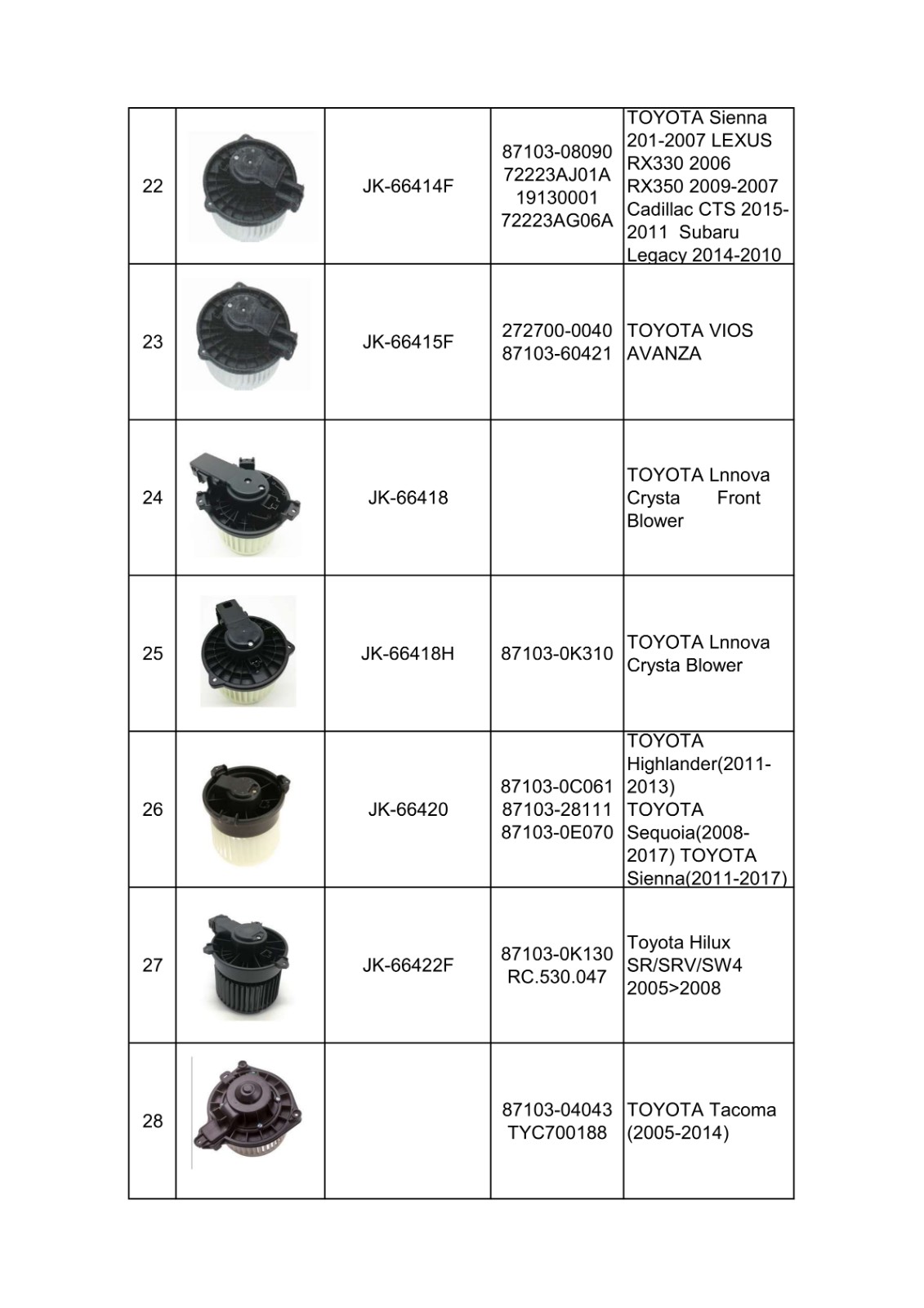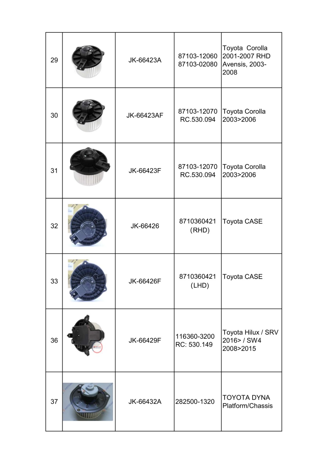 | TOYOTA OE Parts: | Vehicle Year:1992-2020 |
